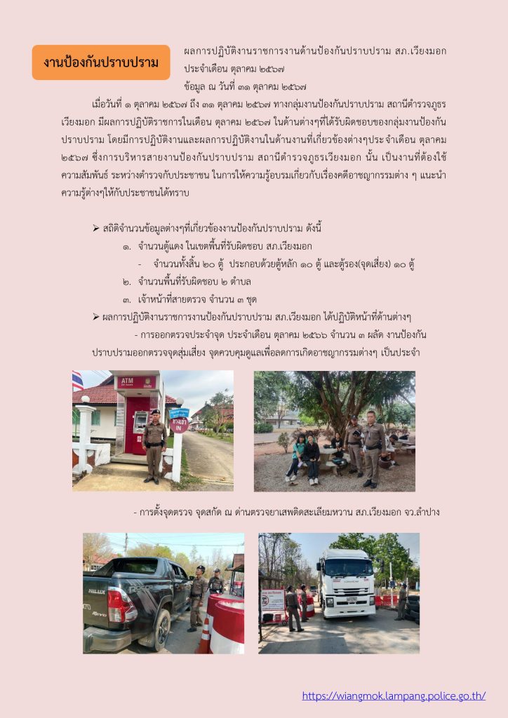 ผลการปฏิบัติ งานป้องกันปราบปราม ประจำเดือน ตุลาคม 2567 31 ตุลาคม 2567 โดย veangmok / งานป้องกันปราบปราม Facebook iconFacebookTwitter iconTwitterLINE iconLine