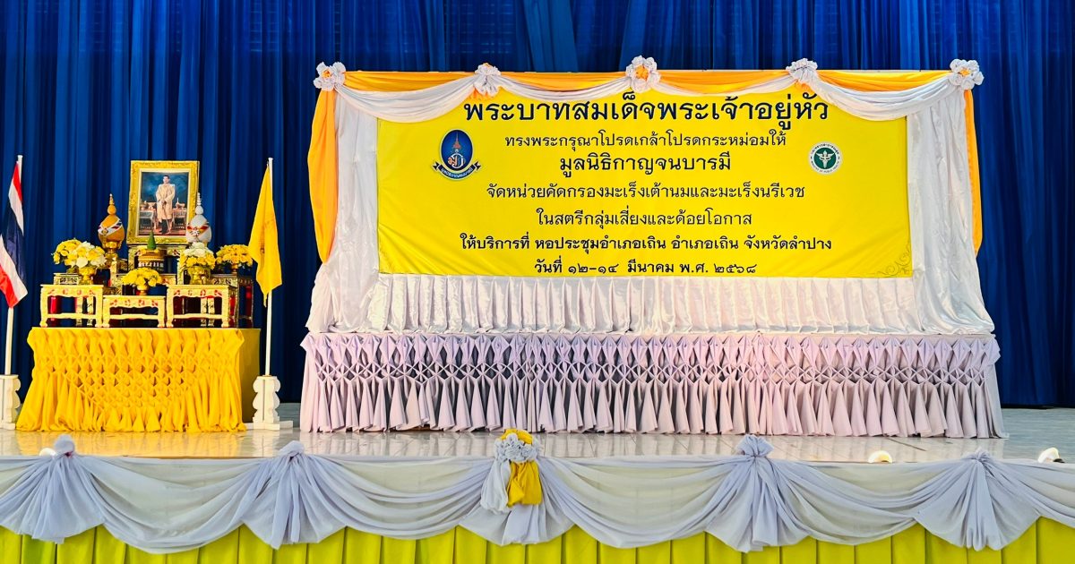 ร่วมกิจกรรมเนื่องในพิธีที่พระบาทสมเด็จพระเจ้าอยู่หัว รัชกาลที่ 10 ทรงพระกรุณาโปรดเกล้าโปรดกระหม่อมให้มูลนิธิกาญจนาบารมีจัดหน่วยคัดกรองมะเร็งเต้านมและมะเร็งนรเวชในสตรี 12 มีนาคม 2568 โดย veangmok / ข่าวประชาสัมพันธ์ วันที่ 12 มีนาคม 2568 เวลา 08.00 น.โดยการอำนวยการของ พ.ต.อ.พินิจ เนตรปัญญา ผกก.สภ.เวียงมอก มอบหมายให้ พ.ต.ท.โสกิจ วรวงศ์ สว.สส.สภ.เวียงมอก เป็นตัวแทนเข้าร่วมกิจกรรมเนื่องในพิธีที่พระบาทสมเด็จพระเจ้าอยู่หัว รัชกาลที่ 10 ทรงพระกรุณาโปรดเกล้าโปรดกระหม่อมให้มูลนิธิกาญจนาบารมีจัดหน่วยคัดกรองมะเร็งเต้านมและมะเร็งนรเวชในสตรี ณ หอประชุมอำเภอเถิน จังหวัดลำปาง โดยมีนายอำเภอเถิน เป็นประธาน มีหน่วยงานราชการ ประชาชน เข้าร่วมในการตรวจ อย่างพร้อมใจ ในกิจกรรม Facebook iconFacebookTwitter iconTwitterLINE iconLine
