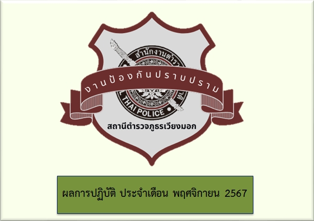 ผลการปฏิบัติ งานป้องกันปราบปราม ประจำเดือน พฤศจิกายน 2567
