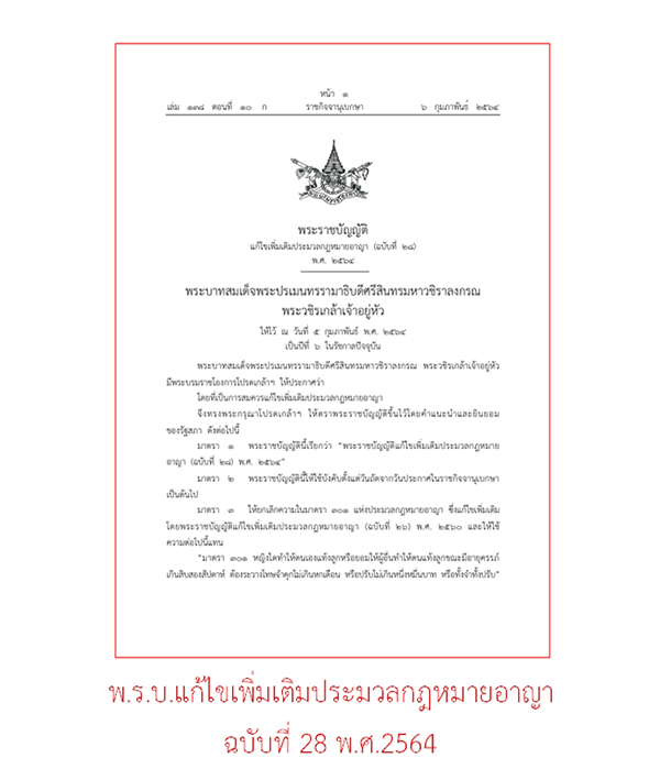 แก้ไขเพิ่มเติมประมวลกฎหมายอาญา (ฉบับที่ ๒๘)