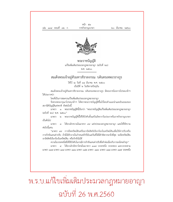 แก้ไขเพิ่มเติมประมวลกฎหมายอาญา (ฉบับที่ ๒๖)