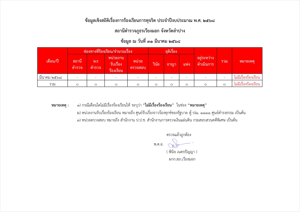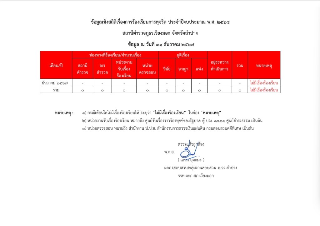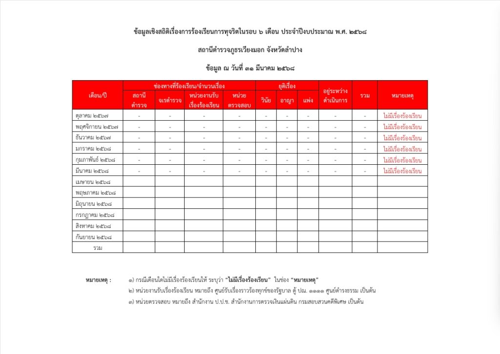 O17 ข่องทางการแจ้งเรื่องร้องเรียนการทุจริตและข้อมูลเชิงสถิติเรื่องร้องเรียนการทุจริต